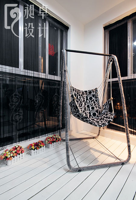 《琴瑟音弧》连阳台的摇椅也是黑白色调,将黑白简约进行到底!