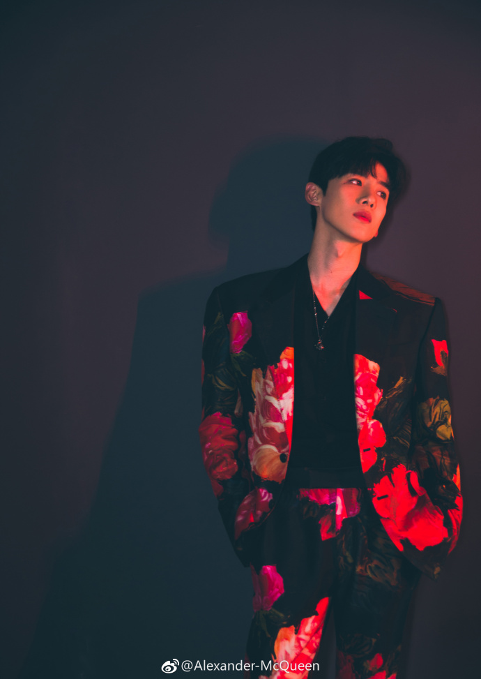 @白敬亭 身着#Alexander McQueen亚历山大麦昆#2018年秋冬系列花卉图案西装展现跨年造型,演绎桀骜风尚。