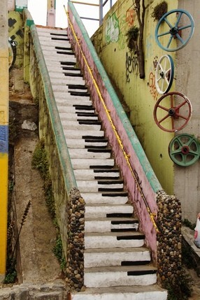 旧金山Moraga街与16大道交会处,陶瓷艺术家Aileen Barr与马赛克艺术家ColetteCrutcher共同合作,与超过300名社区志工花费两年半时间,完成了一道如童话般梦幻的艺术台阶。2000个 手工制作的瓷砖与75000块瓷砖碎片、镜片与彩色玻璃,勾勒出美轮美奂的缤纷图案。
