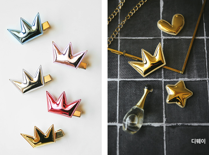 韩国进口RD 闪亮镜面皇冠爱心五角星配件DIY 儿童发夹发饰材料