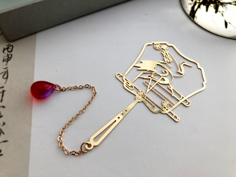 双鹤团扇金属书签中国风古典流苏文艺创意小清新仙鹤情人节礼品