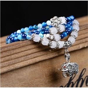 诗蔓 专柜正品 巴西精选蓝玉髓多圈藏银水钻“幸运象”手链 美容养颜 时尚爆款 送朋友佳品新品 男女手链 男士 女士水晶手链