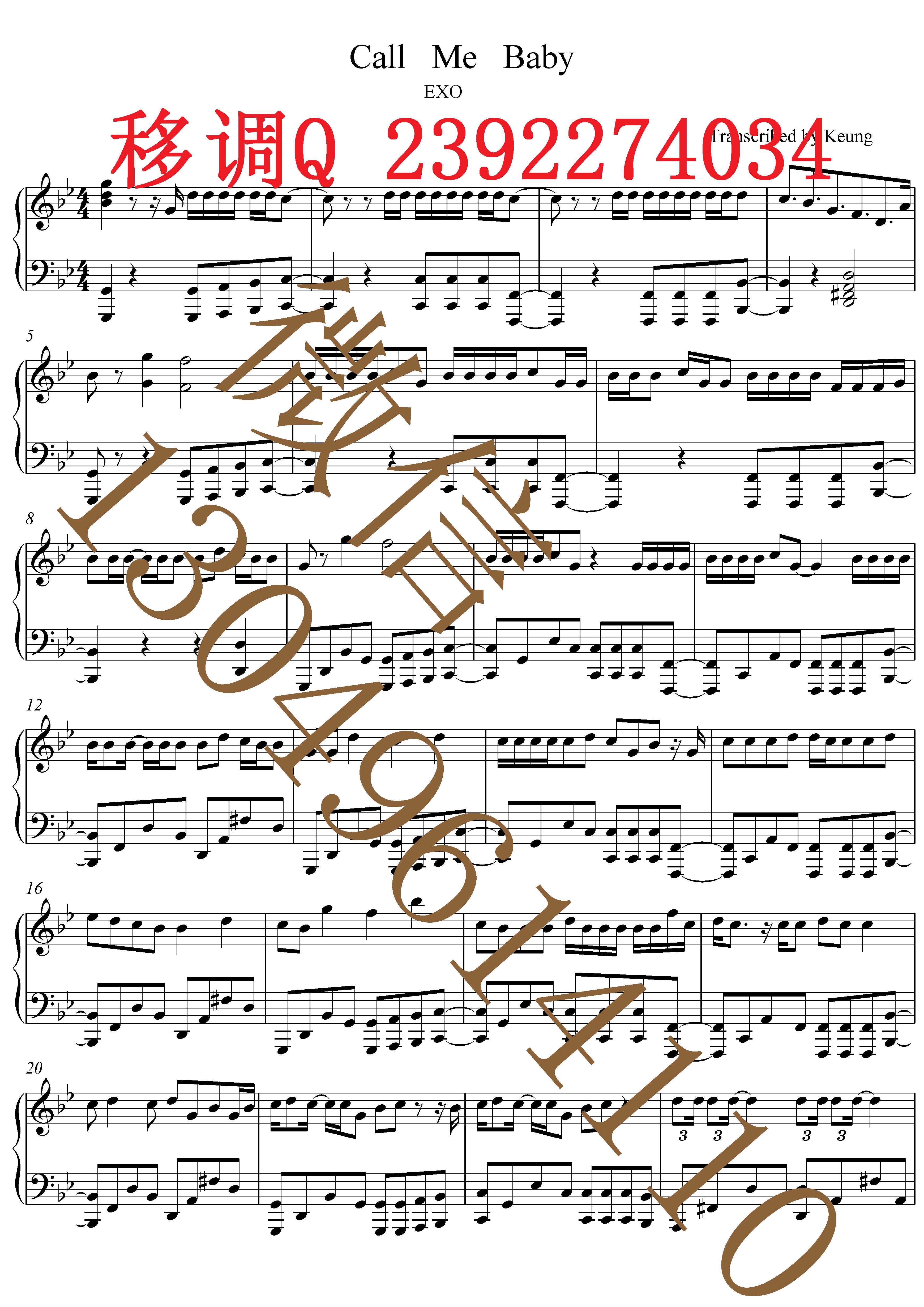 CALL ME Baby 五线谱 声乐正谱 钢琴伴奏谱 移调专业户 打谱专业户 【降B
