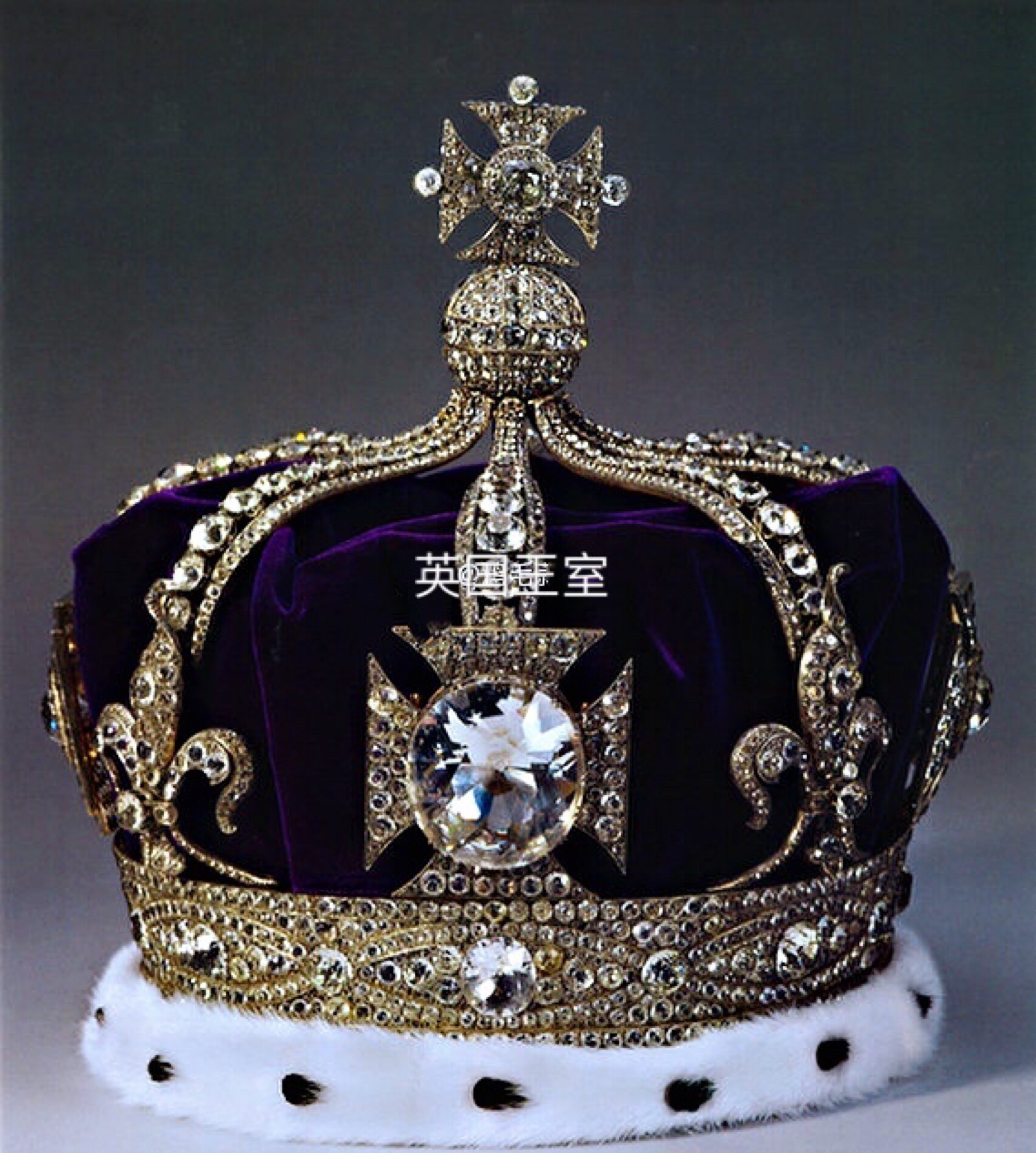 1902年的爱德华七世加冕礼,亚历山德拉特别定制了这顶王冠。王冠设计八个拱形,其中四个拱形的底部连接十字架,其余四个连接鸢尾花图案。这顶王冠最大的焦点是镶嵌在十字架中间的钻石,这颗钻石叫 koh-i-nor 光之山,重105.6ct,椭圆形切割,13世纪发现于印度南部Golconda钻石矿。原石重达793ct,曾是世界上最大的钻石。