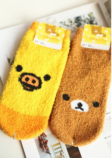 袜子双轻松熊小黄鸡珊瑚绒船袜毛巾袜短袜毛茸茸地板袜
