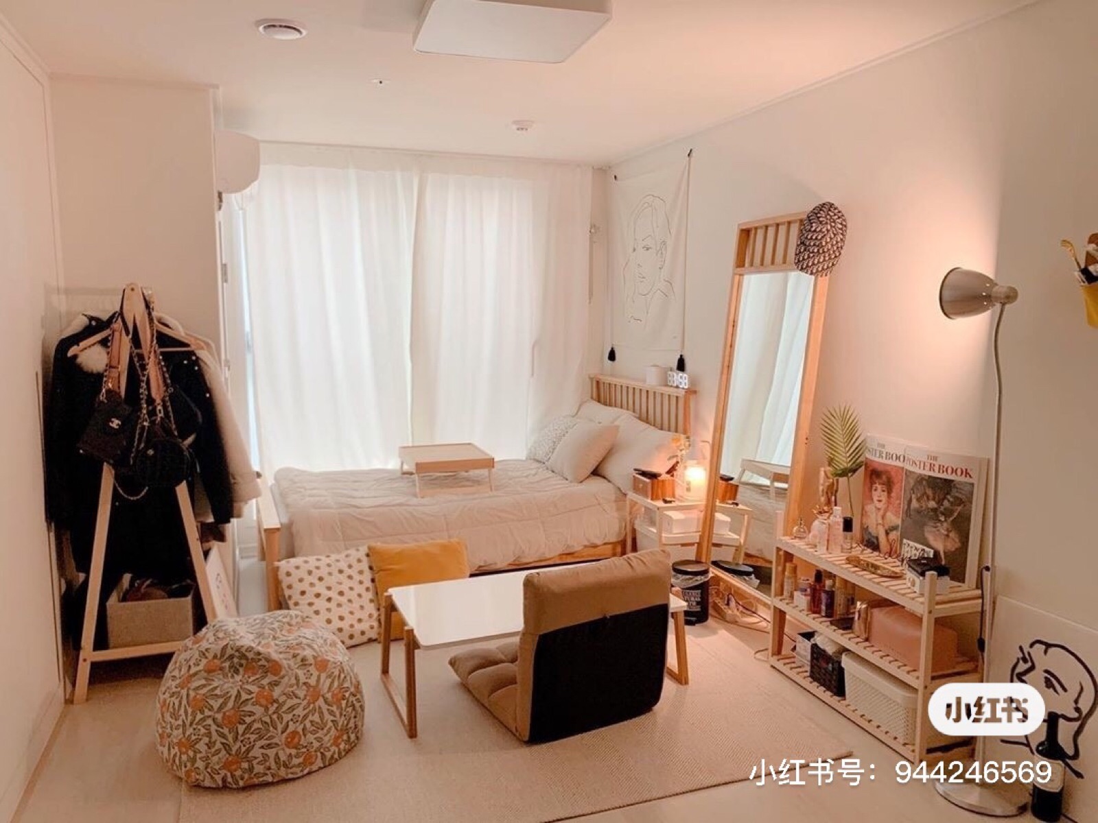 大飘窗+大地毯+懒人沙发。阳光天的话是最幸福的角落,一楼有花园的可以直接连花园,下午一两点和狗狗一起在地摊上午睡一定是很美的画面。