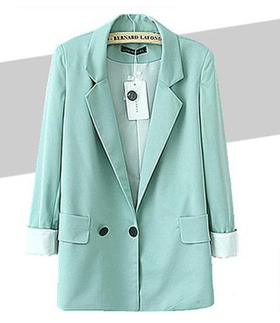 2014欧美新款春季OL修身翻领七分袖一粒扣西服