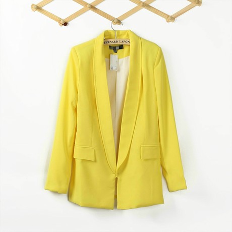 韩国双层麻垂感 百搭中长款亮黄色无领风衣薄外套
