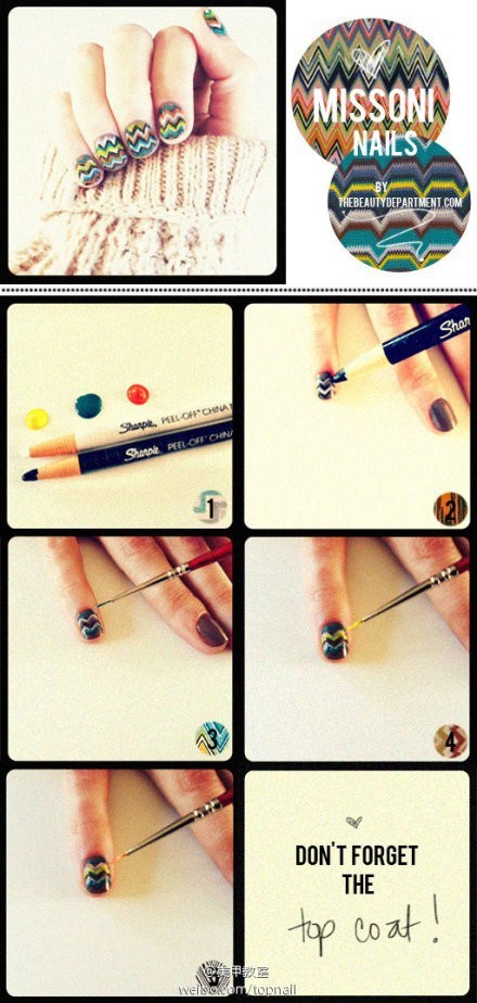 DIY美甲教程 自己在家美甲 波浪纹美甲(图片来自网络)