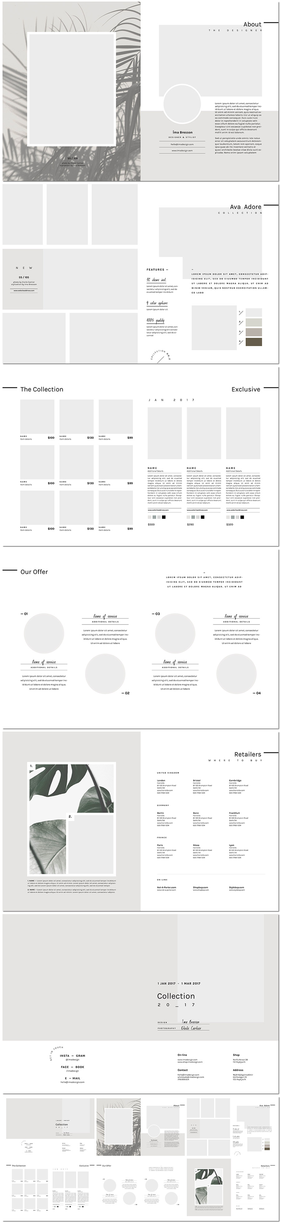 文艺范时尚ins风格欧美简洁杂志画册内页面排版海报设计模板素材