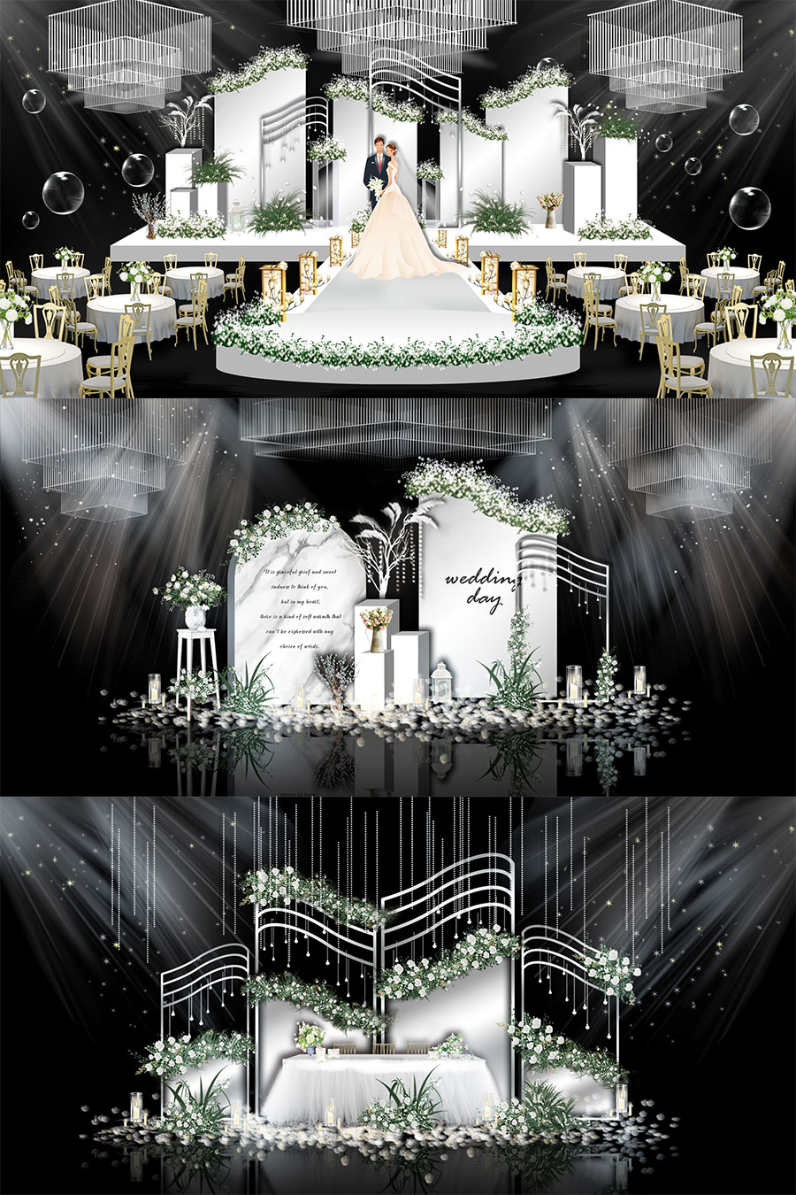 清新白色大理石婚礼舞台签到迎宾区效果图psd模板设计素材