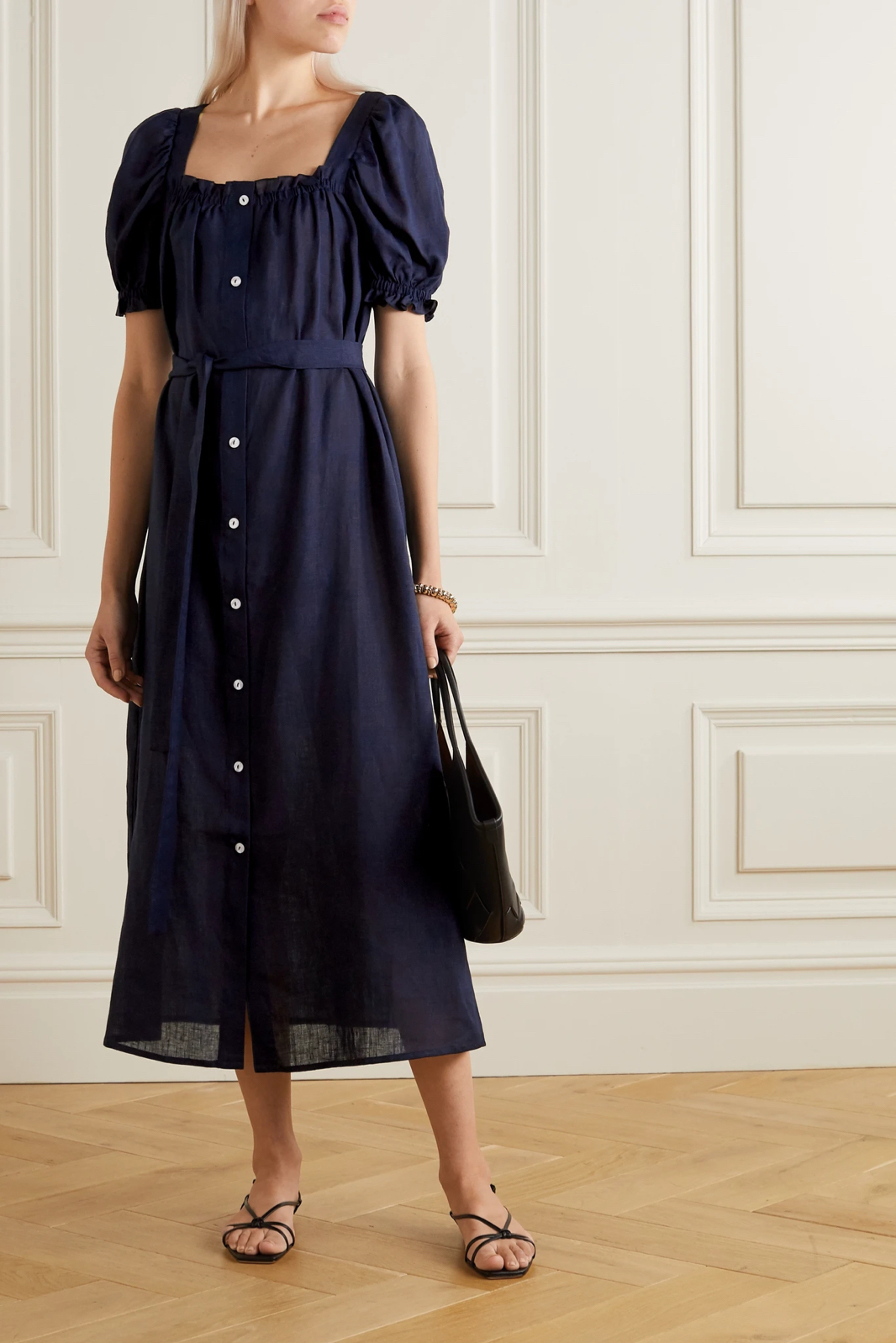 Sleeper 两位创始人注重品质工艺,所有作品都由品牌内部的巧匠团队精心制成。这款 “Brigitte” 亚麻中长连衣裙便是其中的手制佳作,方形领口秀出精致锁骨,蓬蓬袖为你修饰肩臂线条。不妨系上随附腰带,收束略显宽松的廓形。