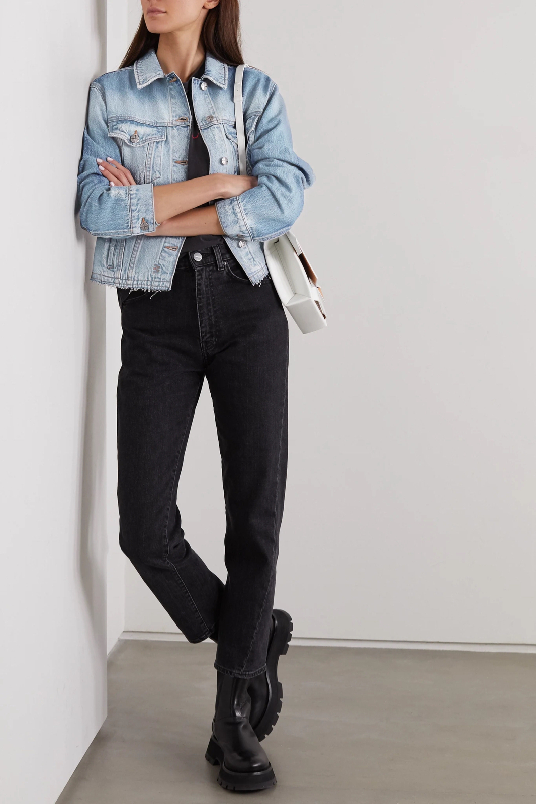 AGOLDE 这款 “Ren” 九分裤以纯棉牛仔布制成,采用高腰阔腿设计,经典耐穿,可助你轻松塑造休闲风造型。不妨搭配 T 恤,并将下摆半掖入腰身。