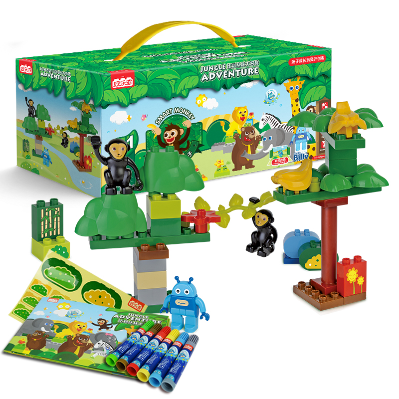 欢乐客早教组装玩具丛林大冒险小套装熊儿童拼装玩具创意玩具礼物 有一天,熊麻麻带着熊宝宝在丛林里四处转悠,肚子饿得咕咕直叫~突然它们发现前面大树上有只蜜蜂巢,便一齐奔到树下,争着跳起来摘那蜜蜂巢。可树太高了,谁也摘不下。于是聪明的小熊就跳在熊麻麻身上把蜜蜂巢给摘了下来~呼呼~真棒捏...