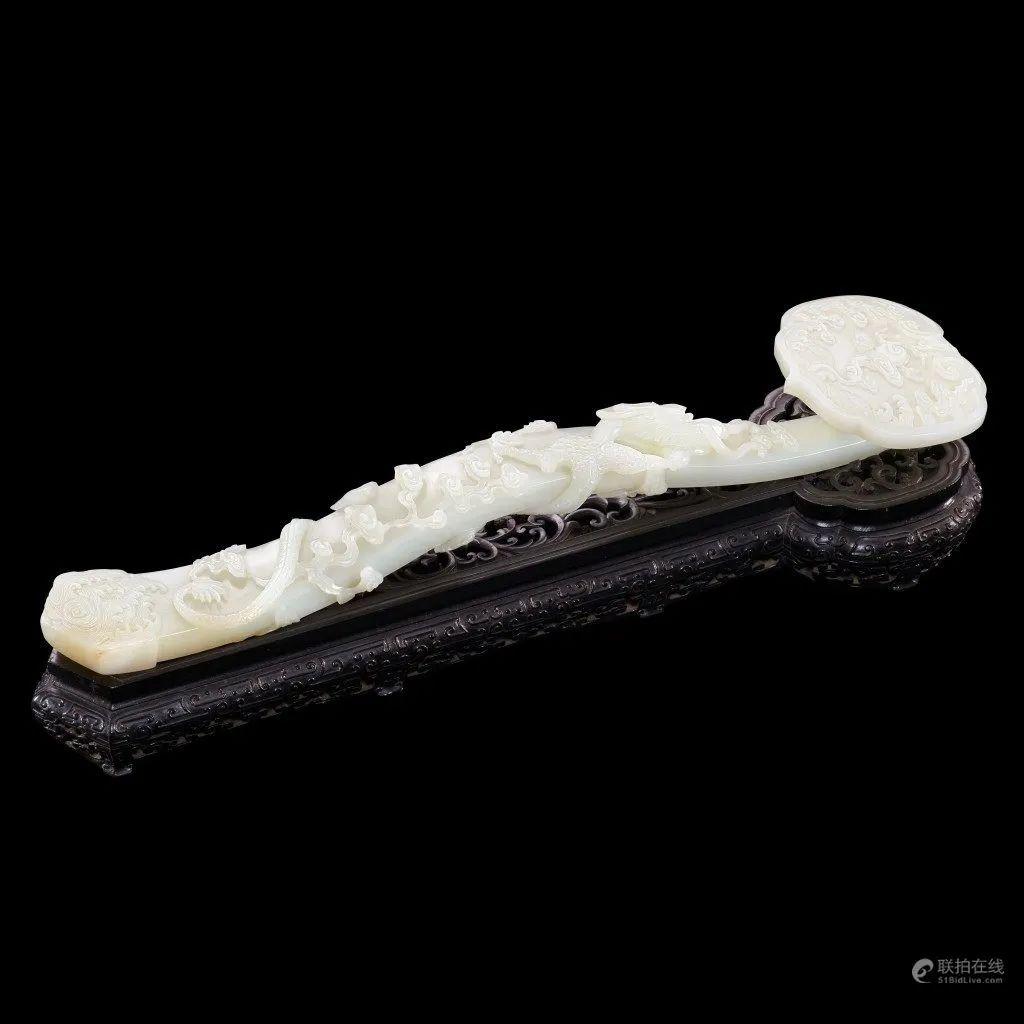 清乾隆 御制白玉赶珠云龙纹题诗如意