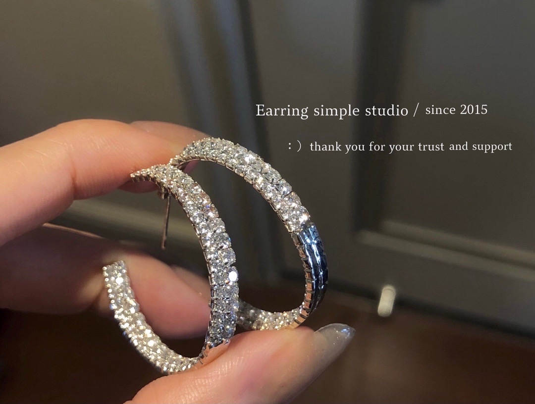 S925纯银 截断式满圈镶钻 内外呼应交错镶嵌 简单干净 能为整体造型多增加%80的魅力 经典C字圈 耐看好搭 气质小女人时髦精常备C字圈