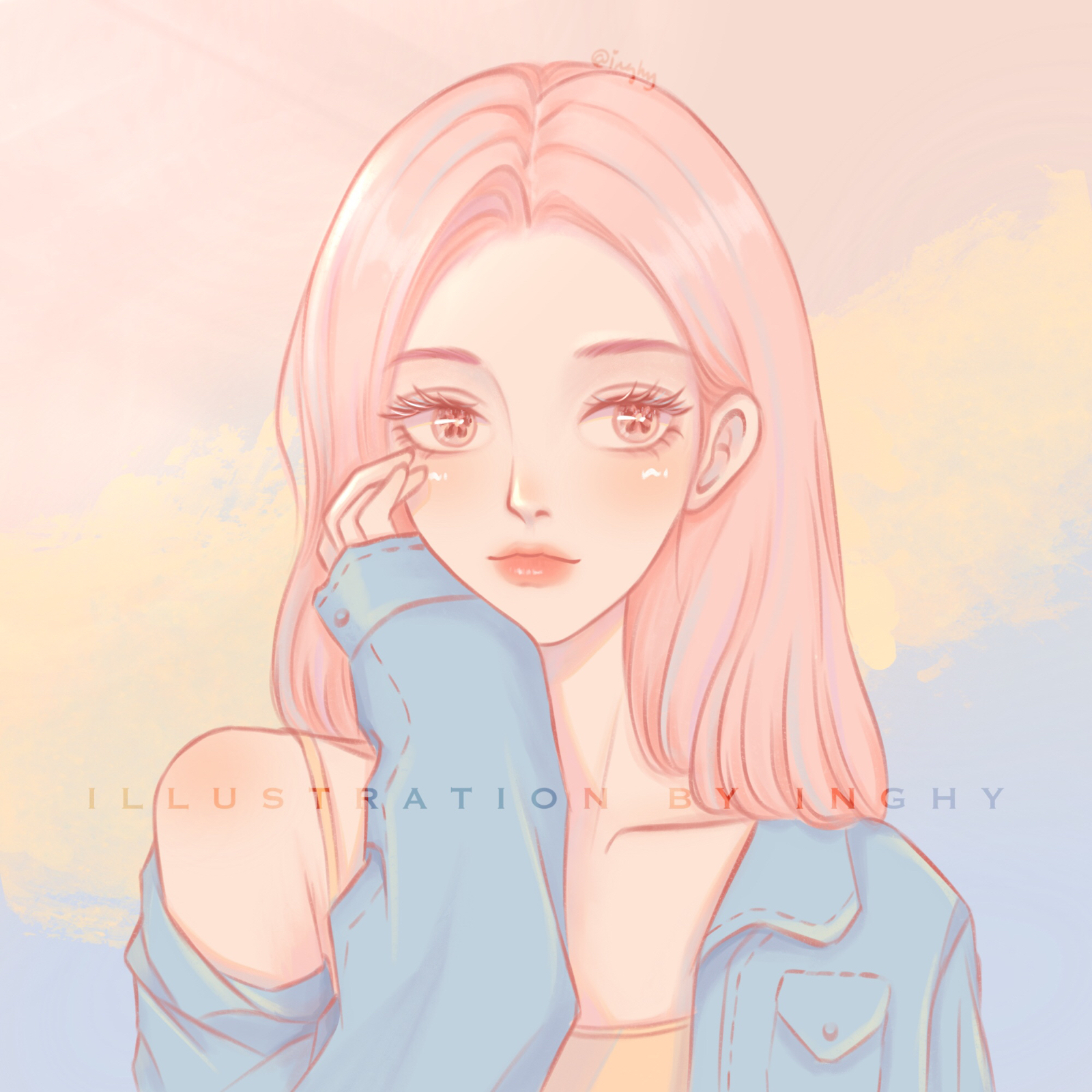 马卡龙色系少女插画