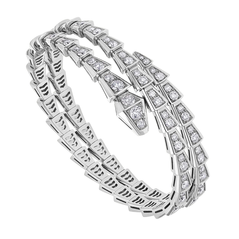 BVLGARI 宝格丽「Serpenti Viper」系列以「蝰蛇 Viper」作为灵感 白金手镯 镶嵌总重5.02ct的圆形切割钻石