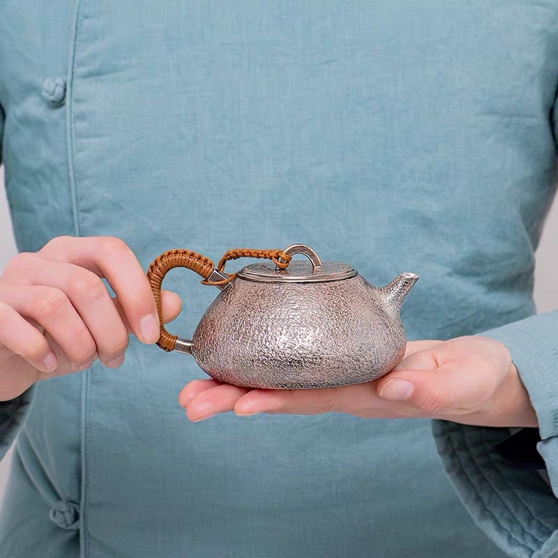 纯银·袋形·银壶 ——中国银都 此器圆饱袋形 壶身布满搥目纹路 炮管直式壶嘴直流顺畅 壶盖上盛而饱满 气势磅礴氛围浓厚 #美好家居打造法##文玩精品##工作使我快乐##好物推荐##茶具#