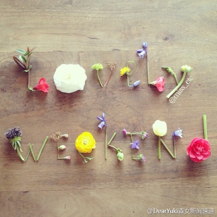 一位创意画家,用一些小花和小的植物,拼出一些小小的祝福 ins id: miss_etc