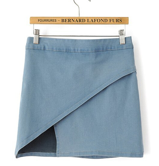 A不对称侧面开叉超显腿长柔软牛仔短裙半身裙