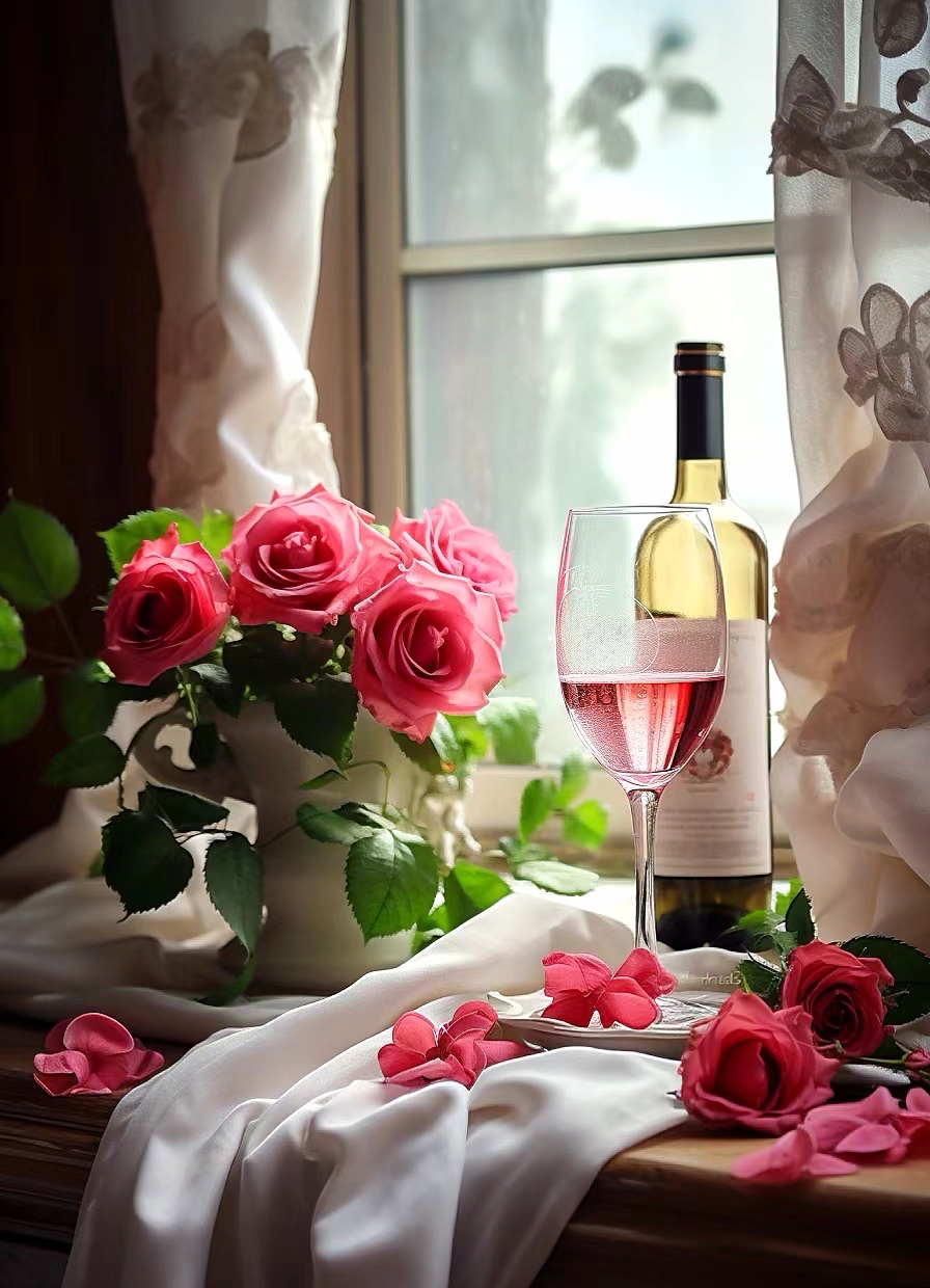 美酒配玫瑰,幸福爱相随!