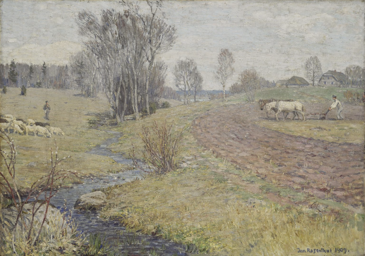 贾尼斯·罗森塔尔斯(1866 – 1916)是一位著名的拉脱维亚画家。罗森塔尔斯的艺术创作范围很广,但绘画对他来说是最重要的。他揭示了自然之美,展现了人与自然的完整。罗森塔尔斯被认为是当时最具影响力的拉脱维亚文化人物之一,他对现代西欧艺术趋势——印象派、新艺术运动和象征主义——在当地艺术界出现的各种创新持开放态度。通过他的各种活动,包括绘画,图形,摄影,应用艺术和艺术批评,他介绍了符合时代趋势和拉脱维亚民族觉醒的新思想。