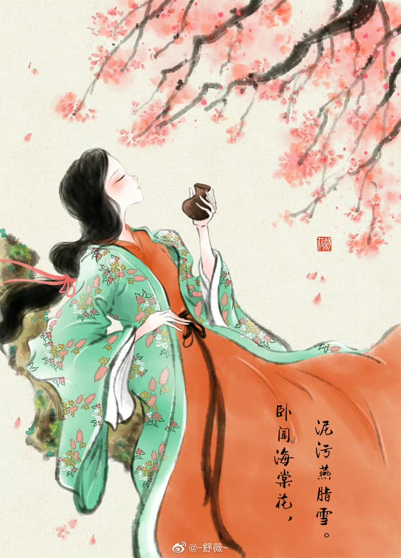 臥間海棠花,泥污燕臘雪。