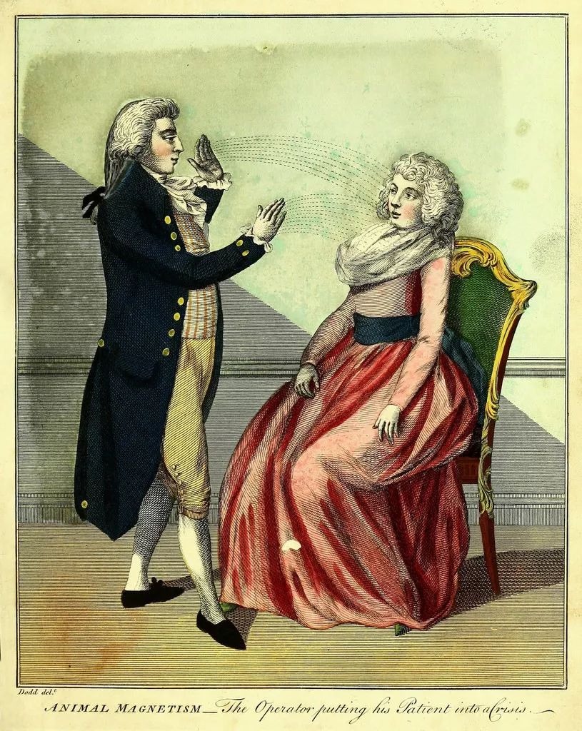 《动物磁力疗法》:插画,出自埃比尼泽·西布利(Ebenezer Sibley)所著《医术要诀及超自然科学》(A Key to Physic, and the Occult Sciences,1794)。