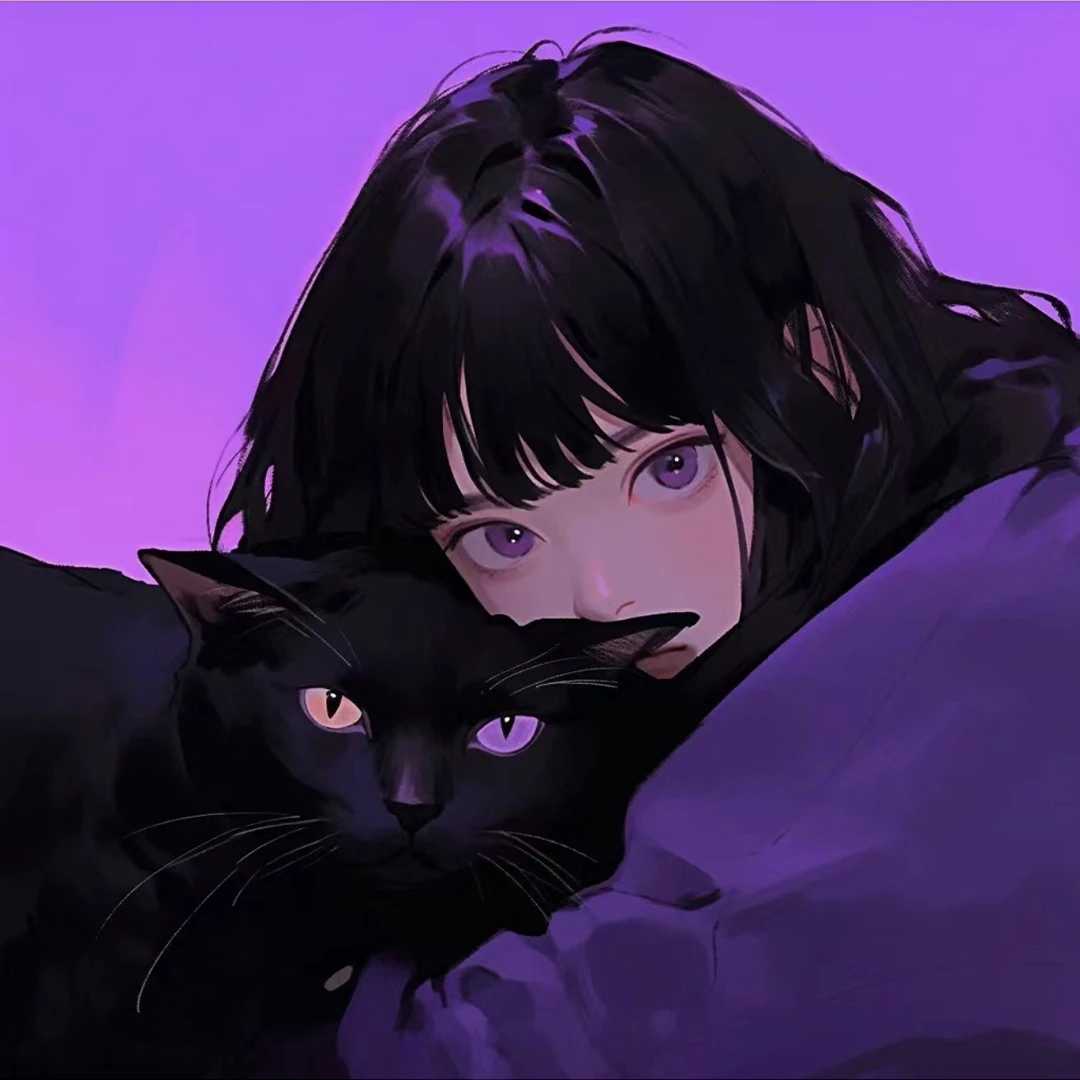 紫色美少女和猫