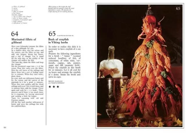 在煮好的肉汤中放入小龙虾,煮上20分钟。再冷却24小时,然后把小龙虾们摆成跳舞的造型,把肉汤滤出,倒入杯中上桌。