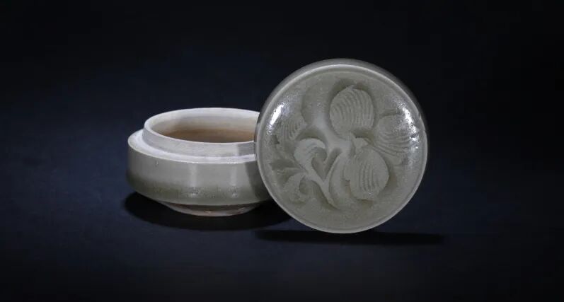北宋 耀州青釉窑刻花粉盒