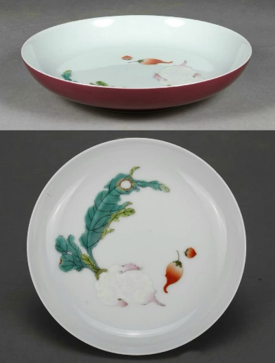 清雍正 胭脂紫釉粉彩莱菔纹小盘