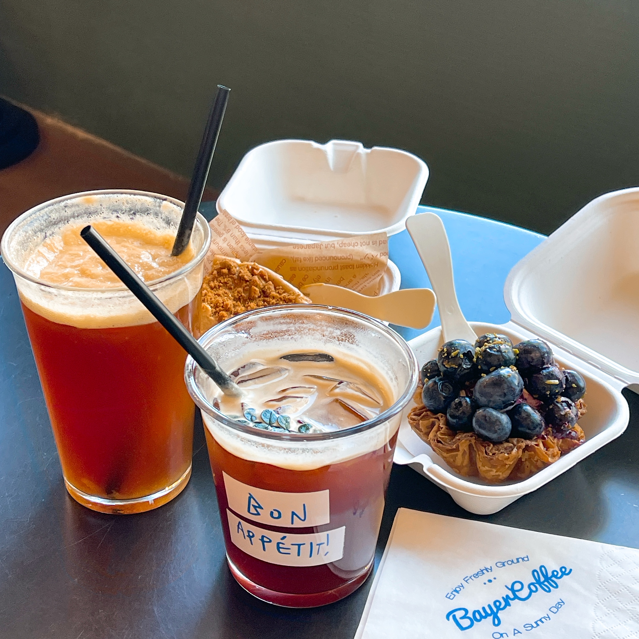 菠萝气泡美式配蓝莓挞,流苏焦糖巴斯克