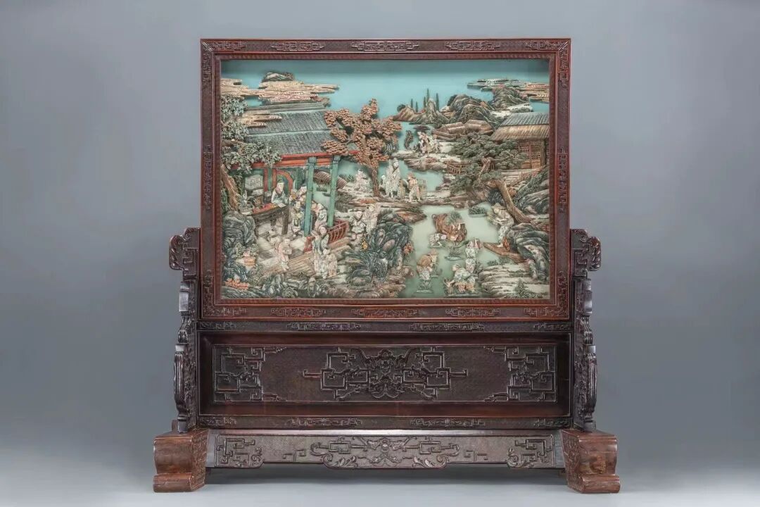清中期或晚期 红木嵌骨雕人物玻璃座屏 观复博物馆藏
