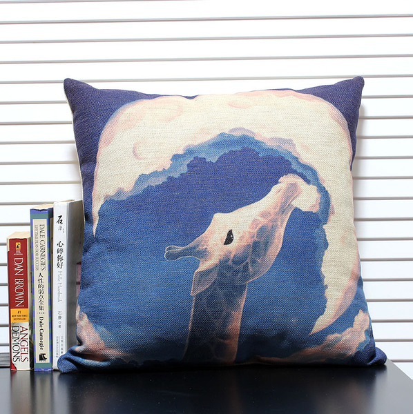 梦幻卡通长颈鹿创意棉麻抱枕靠垫 办公室沙发垫靠枕 外贸高档材质