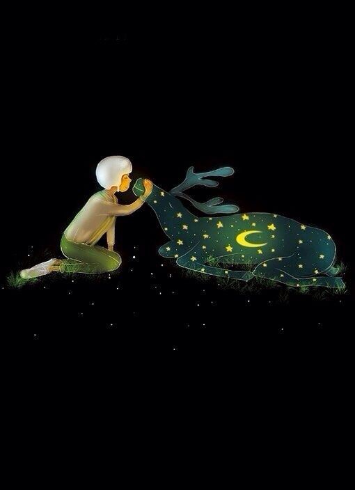 神鹿、森林,一個孤獨小孩的黑白夢境。繪:Elicia Edijanto