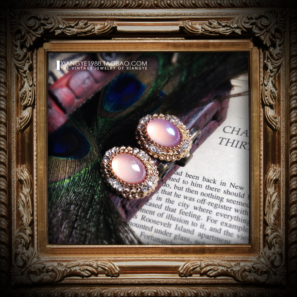 复古欧式宫廷镶水钻宝石耳钉