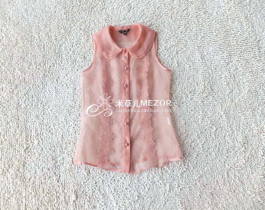 外贸原单尾货 100%真丝欧根纱无袖衬衫 黑色 粉色 藕粉