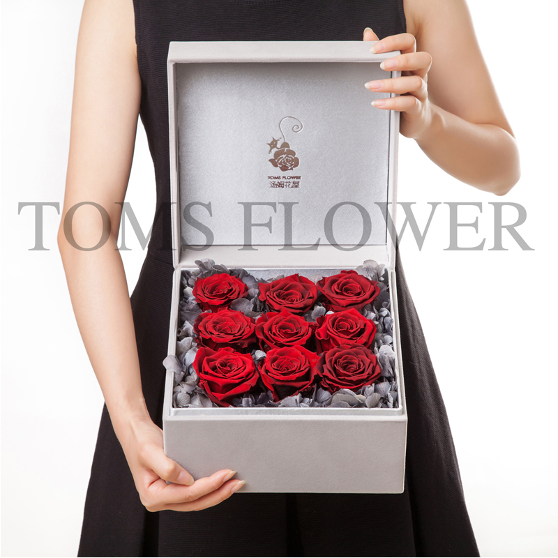 爱情里是不需要说对不起的。因为我爱你,我会用自己的一生来陪伴你,会用最大的努力来保护你,用许多许多的拥抱来温暖你。我有一颗执着的心,拥抱执着的爱情。 汤姆花屋永生花礼盒--执着 深红厄瓜多尔永生玫瑰