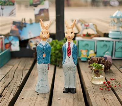 zakka杂货 北欧动物原木雕刻 兔人 创意家居装饰摆件 拍摄道具