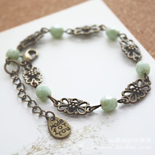狐狸猫的游乐园出品 森系暖薄荷绿色捷克珠手链 手工手做