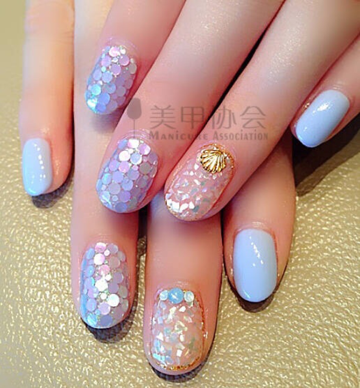蓝色.贝壳.美甲