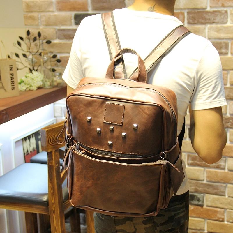 疯马皮大容量双肩包包包韩版时尚铆钉旅行背包学生书包男