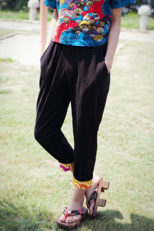 坏品味重磅推荐 中国风亚麻料 祥云图腾拼接宽松哈伦裤九分裤长裤