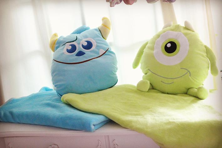 超可爱怪兽#学院 实用抱枕毯 靠垫毯 内有法兰绒纯色毛毯