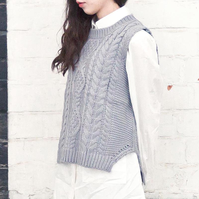 DREAM BACK复古立体麻花宽松圆领套头针织衫休闲无袖背心毛衣女