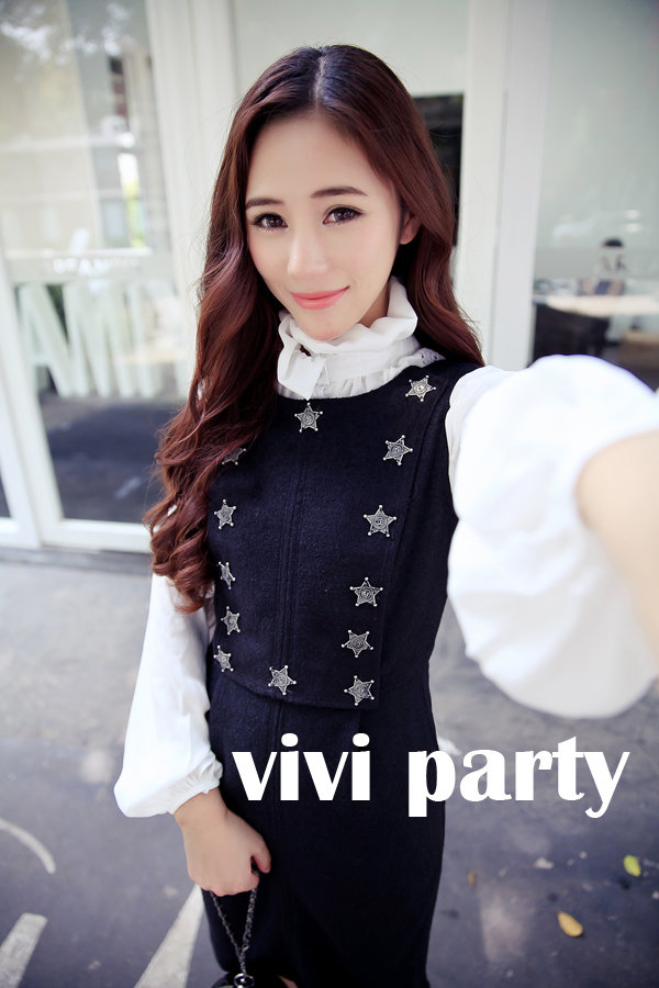 秋装新款呛口小辣椒3月19日精致太阳花黑色收腰拼接气质连衣裙女
