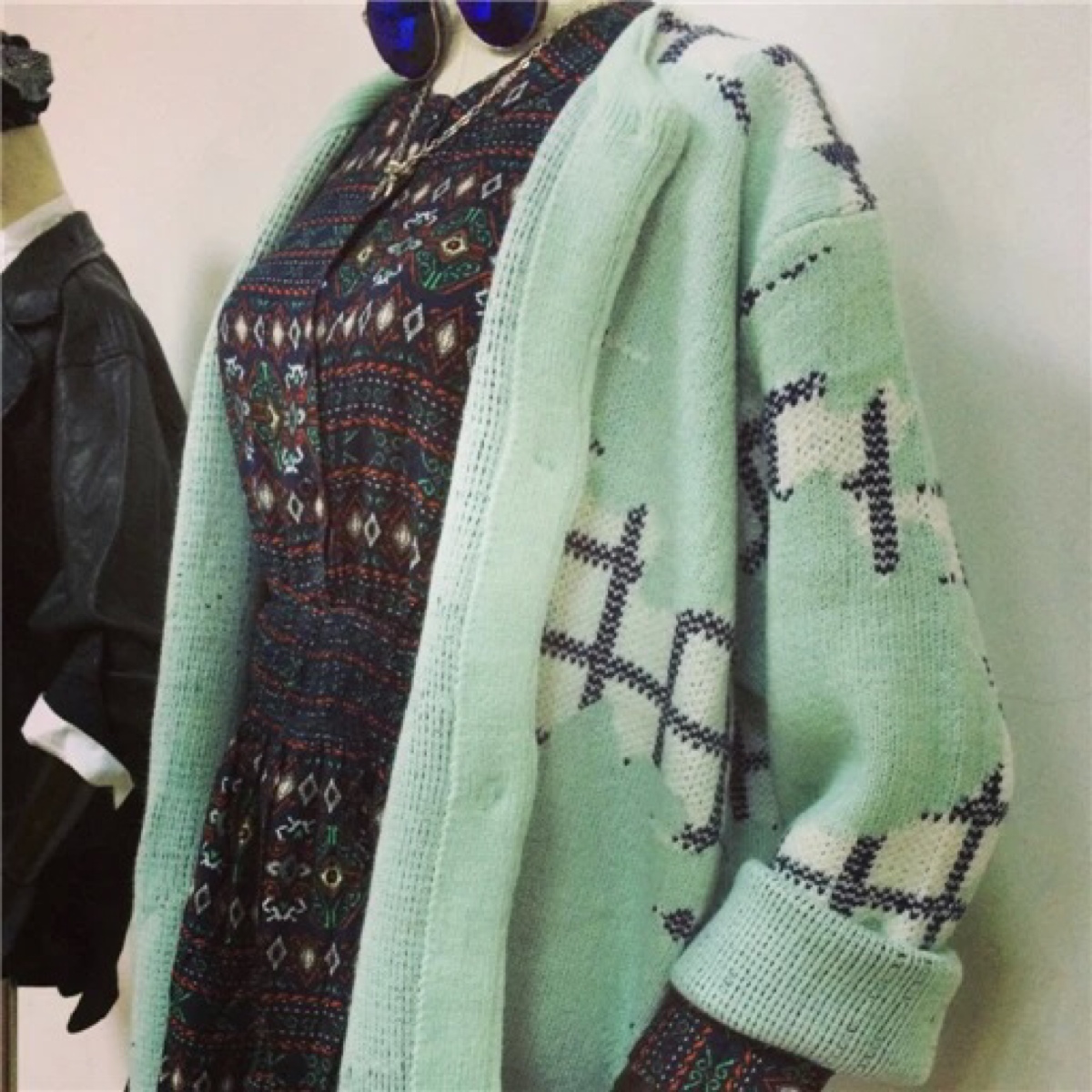 绿色开衫➕民族连衣裙