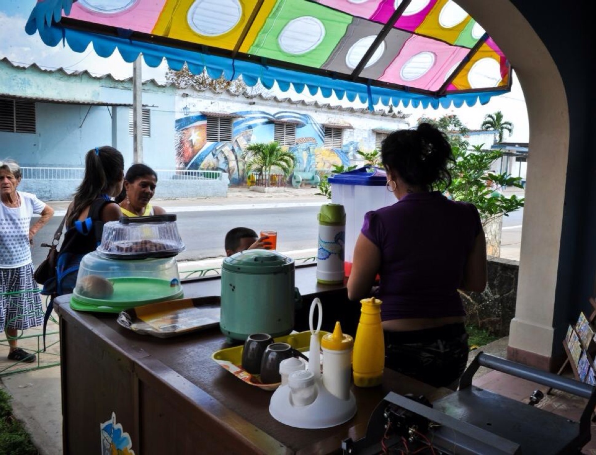 ◆古巴塞米多,一名自雇女士,在自家门口摆起了售卖食物的小摊。